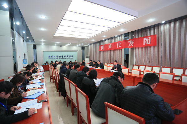 2月27日下午,我校第三届教职工代表大会暨工会会员代表大会第四次会议在图书馆多功能厅召开。全体校领导、正式代表、列席代表以及特邀人员参加会议。院长张登宏作了题为《夯实办学基础 强化内涵提升全力推进高水平高职院校建设》学校工作报告,副院长鲍桂楠主持开幕式。